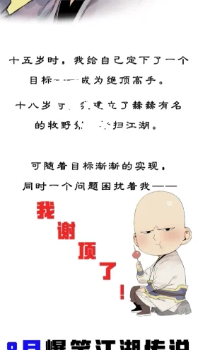 总得来说,《绝顶》真的很适合每日的休闲时间看看,它带我们走进了不一样的“江湖”:如以奶代酒的江湖人,古典技艺保护联盟的正道组织,有着一整本心灵鸡汤的魔教大佬,密探最重要的是要学好文化知识……