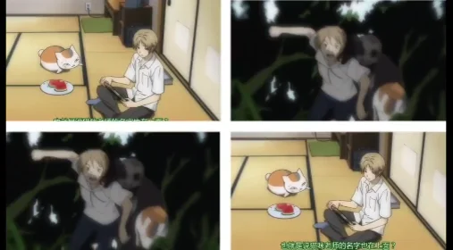 为了取得友人帐,猫咪老师潜入到夏目家里,结果卡在了门上。向夏目夸耀自己真身是如何帅气,结果夏目根本不买账。执意认为它就是一只猫咪,还用各种逗猫咪的方式逗猫咪老师,画面简直太有爱了呀!